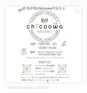 今週10/19(日)は、ハンドメイド作家作品の販売イベント「ながのchicoowa(チクワ)マルシェ」が開催されます。 約30店舗ほどのクラフト出店があり、ワークショップを行う店舗も半数ほど。 キッチンカーやグルメブースもあって、美味しいものも楽しめそう! 10:00~15:00開催。 これにより、噴水は休止(夕方再開)、駐車場はあさ6:00~17:00閉鎖となります。
